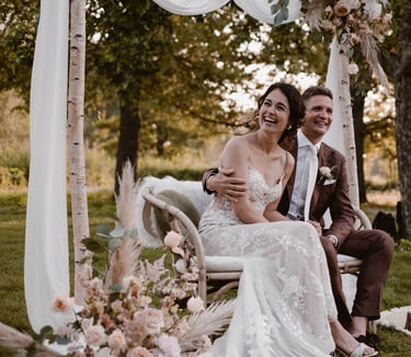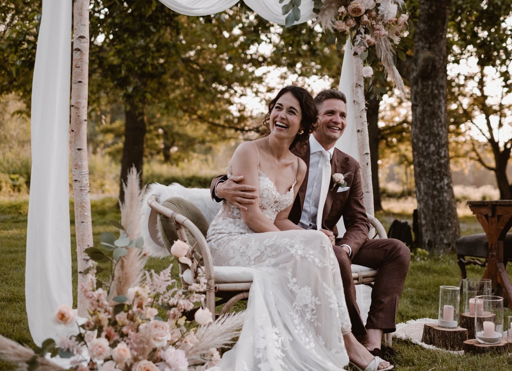 En dan de ceremonie van mijn eigen bruiloft. Al 20 jaar samen met Mark en sinds 2023 getrouwd. Onze ceremonie was allesbehalve saai. Ons huwelijk trouwens ook ;-). Mijn zwager was onze ceremoniespreker en wat was het bijzonder! Ik heb daar gevoeld hoe mooi de liefde is. Niet alleen tussen mijn man en mij, maar ook met alle dierbaren om ons heen. Met een enorme lach, want ja, hilarische anekdotes kwamen voorbij (hou ik van!) , maar ook tranen van ontroering. Het was warm, persoonlijk en onvergetelijk. Voor mij was dat hét moment waarop de cirkel rond voelde. Want nu, als trouwambtenaar, mag ik datzelfde gevoel doorgeven aan andere stellen. Mijn liefde voor mensen, verhalen en het creëren van momenten die je nooit vergeet… daar kan ik mijn ziel en zaligheid in kwijt. En geloof me: dat ga je merken!